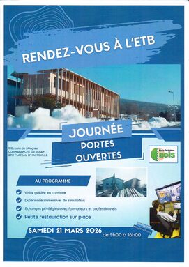 Par JULIE DUPUIS, publié le vendredi 20 mars 2026 09:27 - Mis à jour le vendredi 20 mars 2026 10:44Une autre journée, le samedi 25 avril de 9H à 12H, sera consacrée à la découverte des métiers du bois à l'Ecole Technique du Bois : les inscrits pourront tester eux-mêmes les métiers du bois... (document ci-dessous) -